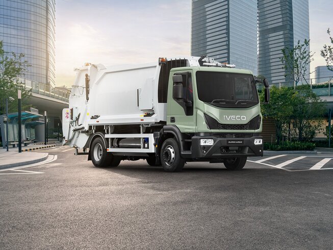 Das anpassbare Fahrgestell des Eurocargo erleichtert die Montage verschiedener Karosserietypen für Müllabfuhranwendungen, einschließlich Seitenlader, Hecklader, Frontlader und Mini-Kompaktoren.